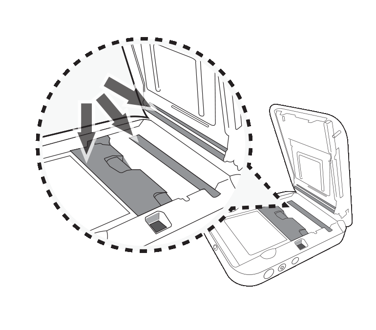 Slide the cover button sideways to open the bottom cover and then remove the photo cartridge.