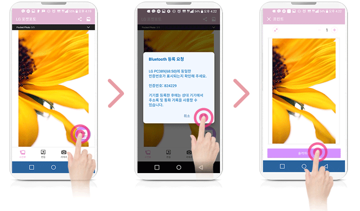 )준비사항 : LG 포켓포토의 전원을 켜고,