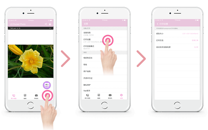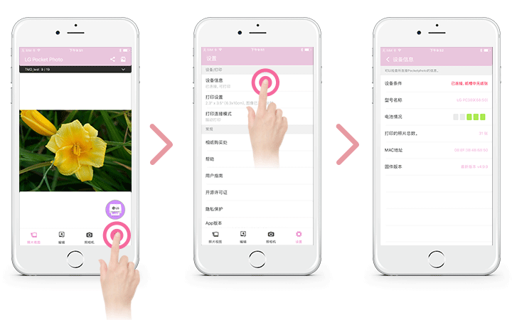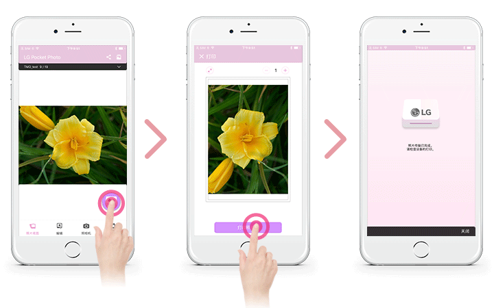在 iPhone 上运行 LG Pocket Photo 应用程 序。2.