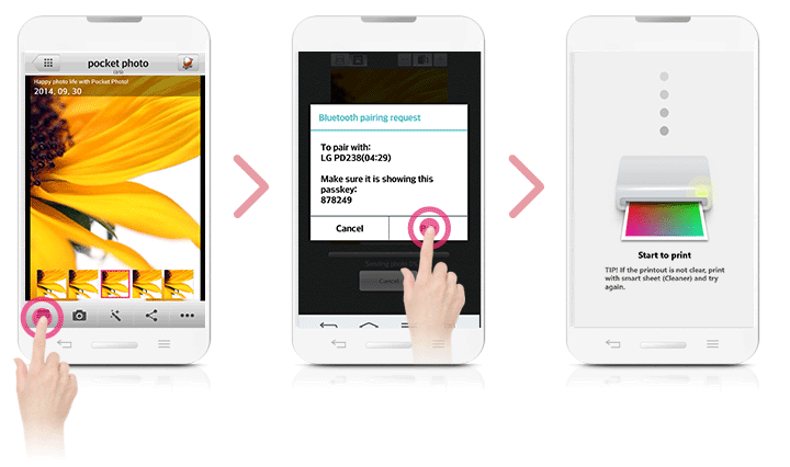 Run LG Pocket Photo App on Android phone.