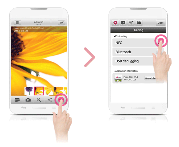 Tagging for the first time, it links to Play Store where you can download LG Pocket Photo App.