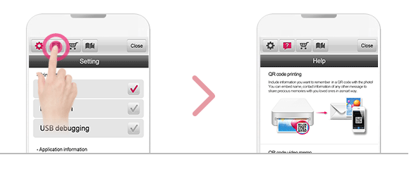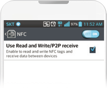 To print a photo using NFC, go to [setting] of smart phone and then, activate [Read and Write]mode.