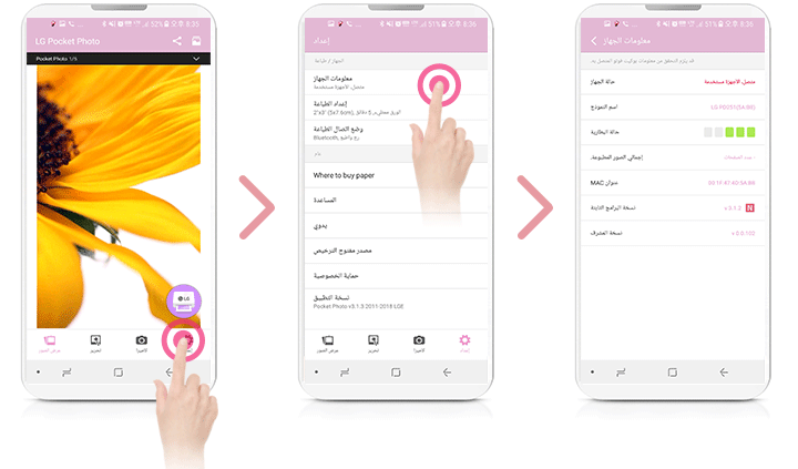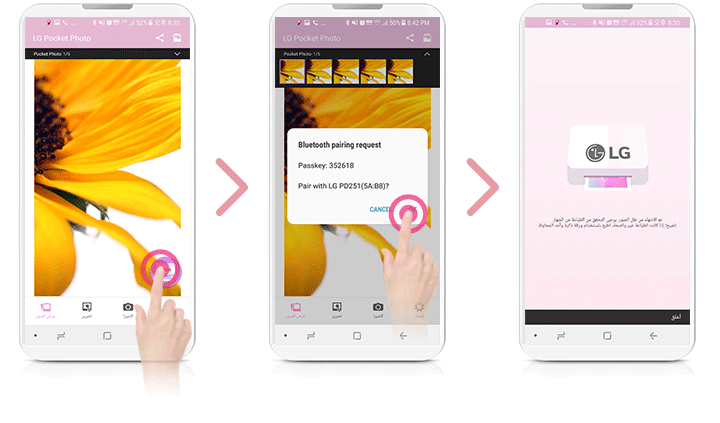 عندما يتم اقتران طابعة الصور الجيبية من LG للمرة الأولى، تظهر