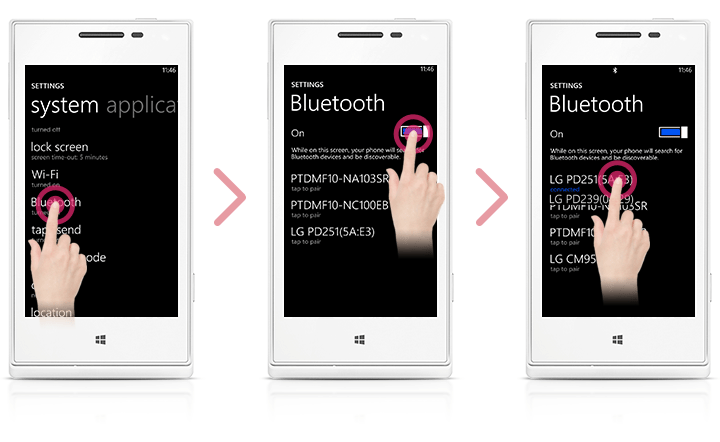 To connect your Pocket Photo device to Windows phone, turn on your device and make sure it is discoverable mode.