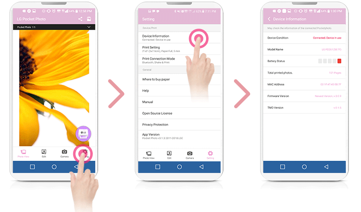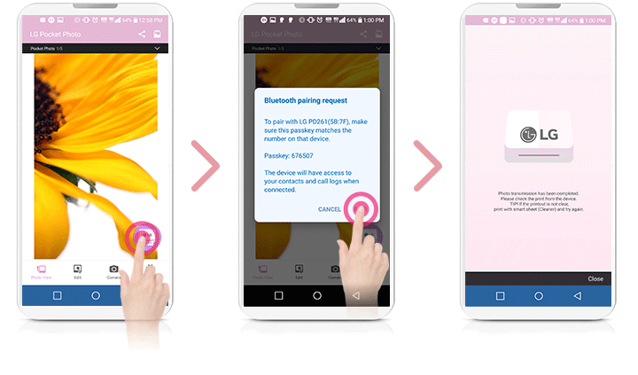 Run LG Pocket Photo App on Android phone.
