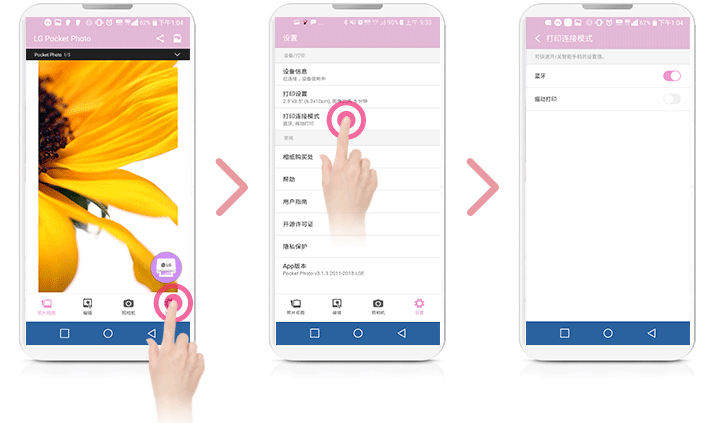搜索“LG Pocket Photo” 或 “趣拍得”。 安装LG Pocket Photo应用程序,请参阅Android应 用市场的搜索。